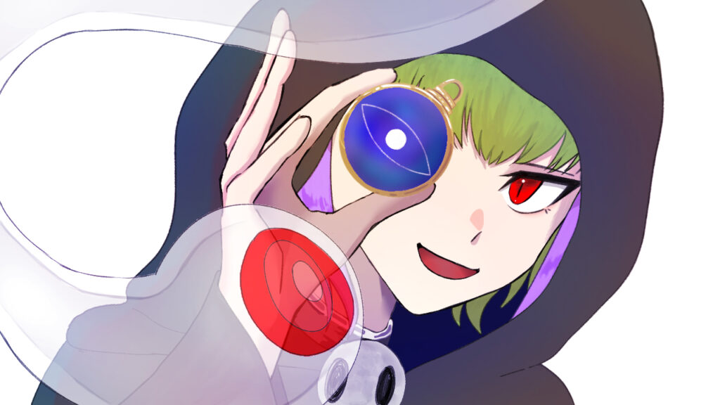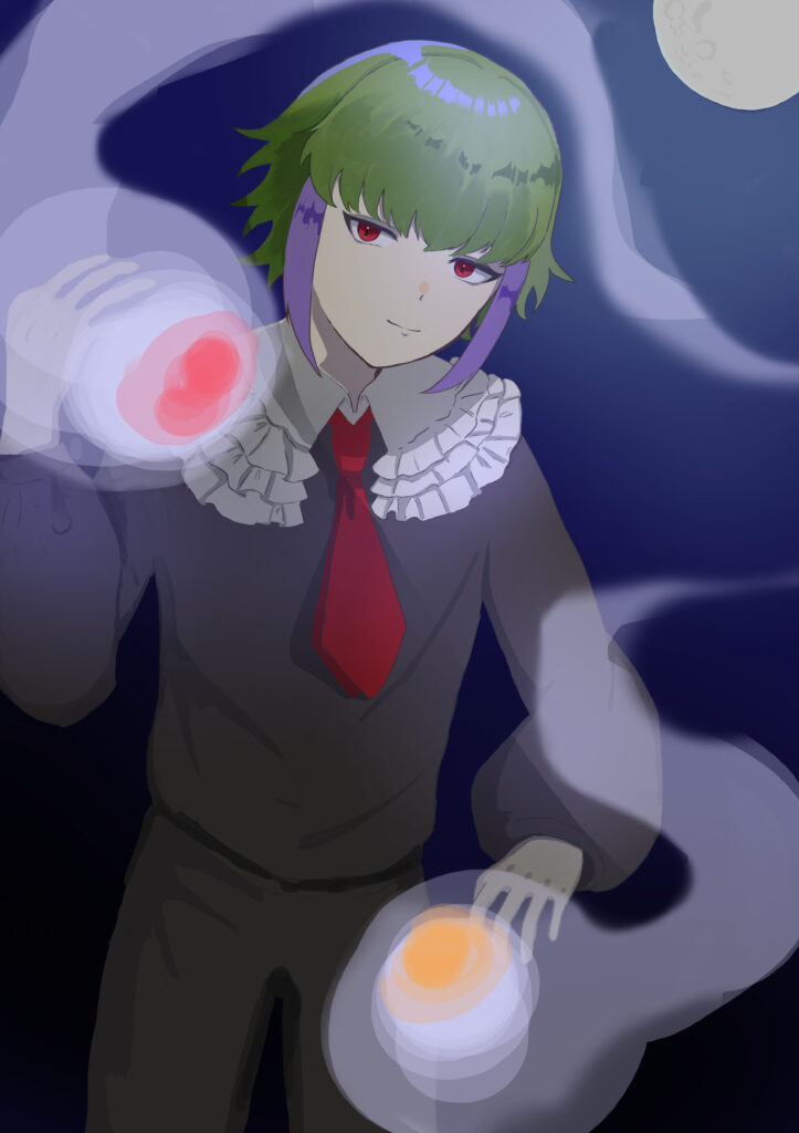 黄緑と紫の髪の子は自分をキャラクター化したもの